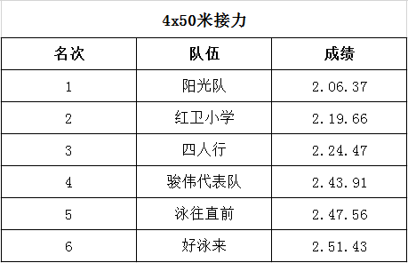 2021全民游泳迎新赛决赛名次公布