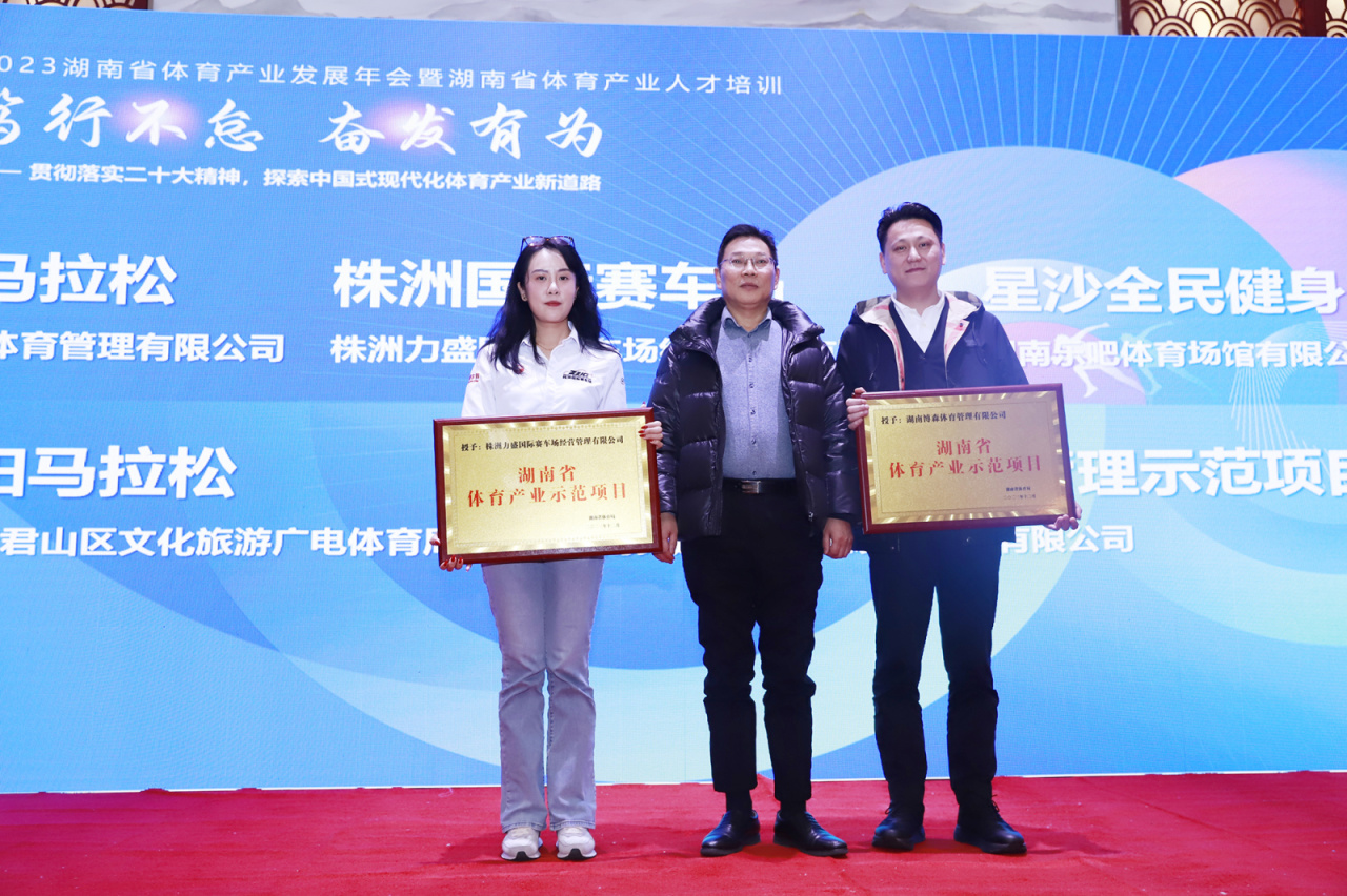 15日上午,2023年湖南省产业发展年会暨湖南省体育产业人才培训在长沙华天大酒店召开。我司运营的IP项目-湘江马拉松赛荣获2023湖南省体育产业示范项目并获得授牌。